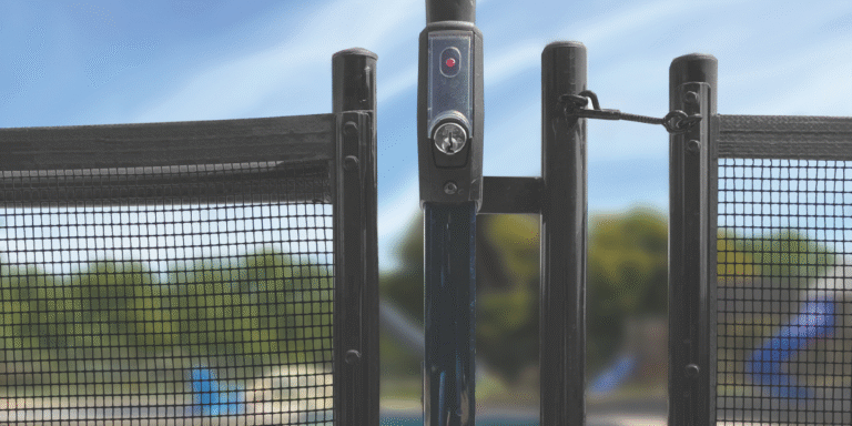 We recommend and install Poolsafe® brand pool fences that are built with premium safety features, including a patented self-latching Triton™ gate designed to prevent climbing, durable, patented ClearGuard™ mesh for maximum visibility, and a reinforced Tri-Pod Truss frame that keeps the gate stable and aligned. These features work together to create a safer, more reliable pool fence for homeowners.